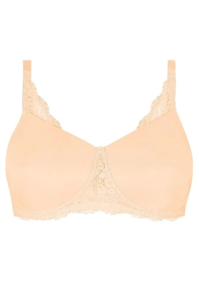Frisch frühlingshaft in Pfirsichtönen überzeugt Prothesen BH Emma SBP von Amoena mit wattierten Cups – SBP soft bra padded. Beidseitig diskret eingearbeitete Prothesen Taschen bewahren Ihre Brustprothese zuverlässig und schaffen eine ebenmäßige Silhouette. Bequemer Alltagstyle mit moderner floraler Spitze in Kombination mit ultraweichem Mikrofasermaterial lassen Prothesen BH Emma zu Ihrem Lieblings BH werden. Textile Knöpfe zwischen den Cups runden den femininen Style attraktiv ab. Prothesen BH Emma ist ein optimaler T-Shirt-BH zum unsichtbaren Tragen unter der Kleidung. Leicht gepolsterte Cups kaschieren Unebenheiten und verhindern Transparenz. Das hochwertige Material aus atmungsaktiver, temperaturausgleichender Mikrofaser bietet ein gutes Hautklima und ein angenehmes Tragegefühl. Bequeme und längenverstellbare, elastische Träger optimieren die Passform. Der weich gepolsterte Rückenverschluss liegt angenehm auf der Haut.