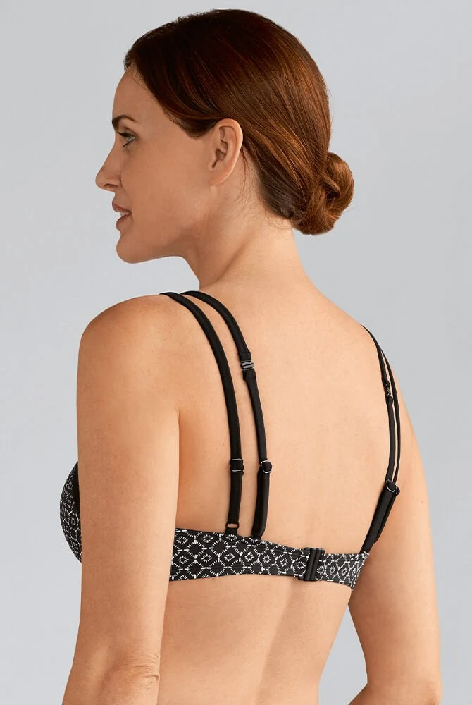 - Prothesen Bikinioberteil Ayon ist ein bügelloses Soft-BH-Badetop mit geometrischem schwarz-weiß Print