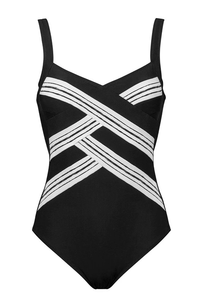 Charmline Badeanzug mit Diagonalprint in elegantem Schwarzweiß