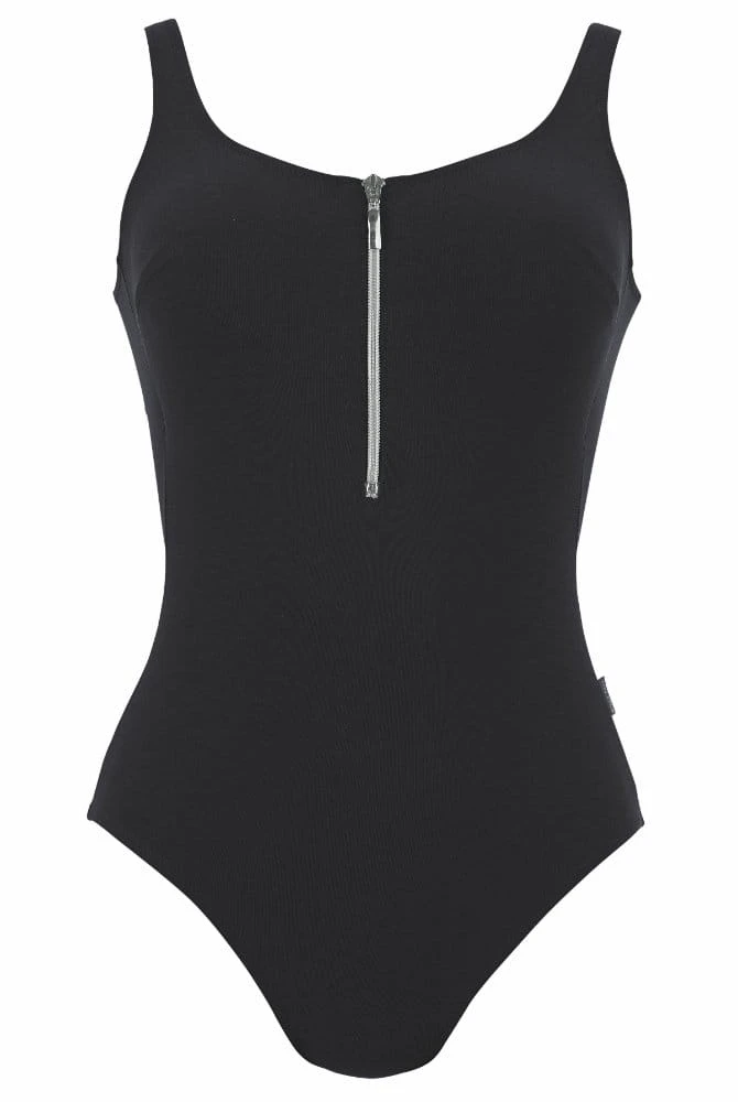 Einteiler Elouise mit modischen Raffinessen ist für sportliche Badenixen unentbehrlich für den Urlaub und auch perfekt für Freibad und Hallenbad. Der sportliche Look des Badeanzugs aus der Badekollektion Island Hopping wird durch den kessen Reißverschluss unterstrichen.