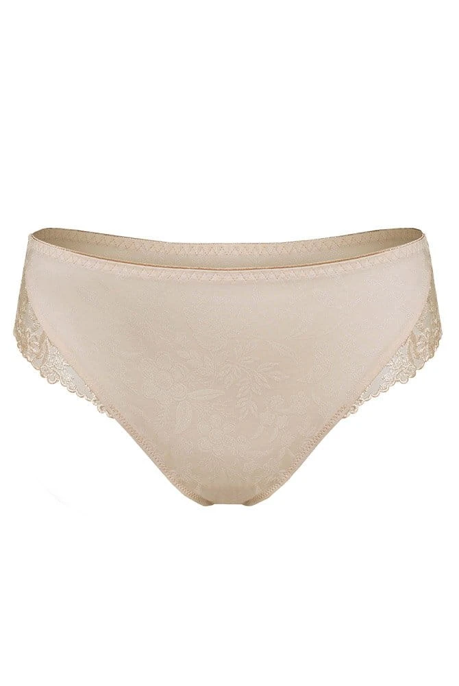 Wunderschöne Microfaser gekonnt kombiniert mit zartem Blütendessin und romantischer Spitze – das ist Serie Jasmin von Qualitätsmarke Ulla. Der Slip ist für große Größen entwickelt und schmiegt sich passgenau an Ihren Körper. Der Beinausschnitt ist moderat hoch, so dass sich nichts verschieben kann. Der mittehoch geschnittene Bund sitzt bequem hüfthoch. Hochwertige Microfaser ist atmungsaktiv und die hübschen Einsätze aus floraler Stickerei sehen wunderschön aus. Slip Jasmin ergänzt perfekt die Jasmin BHs der Serie.